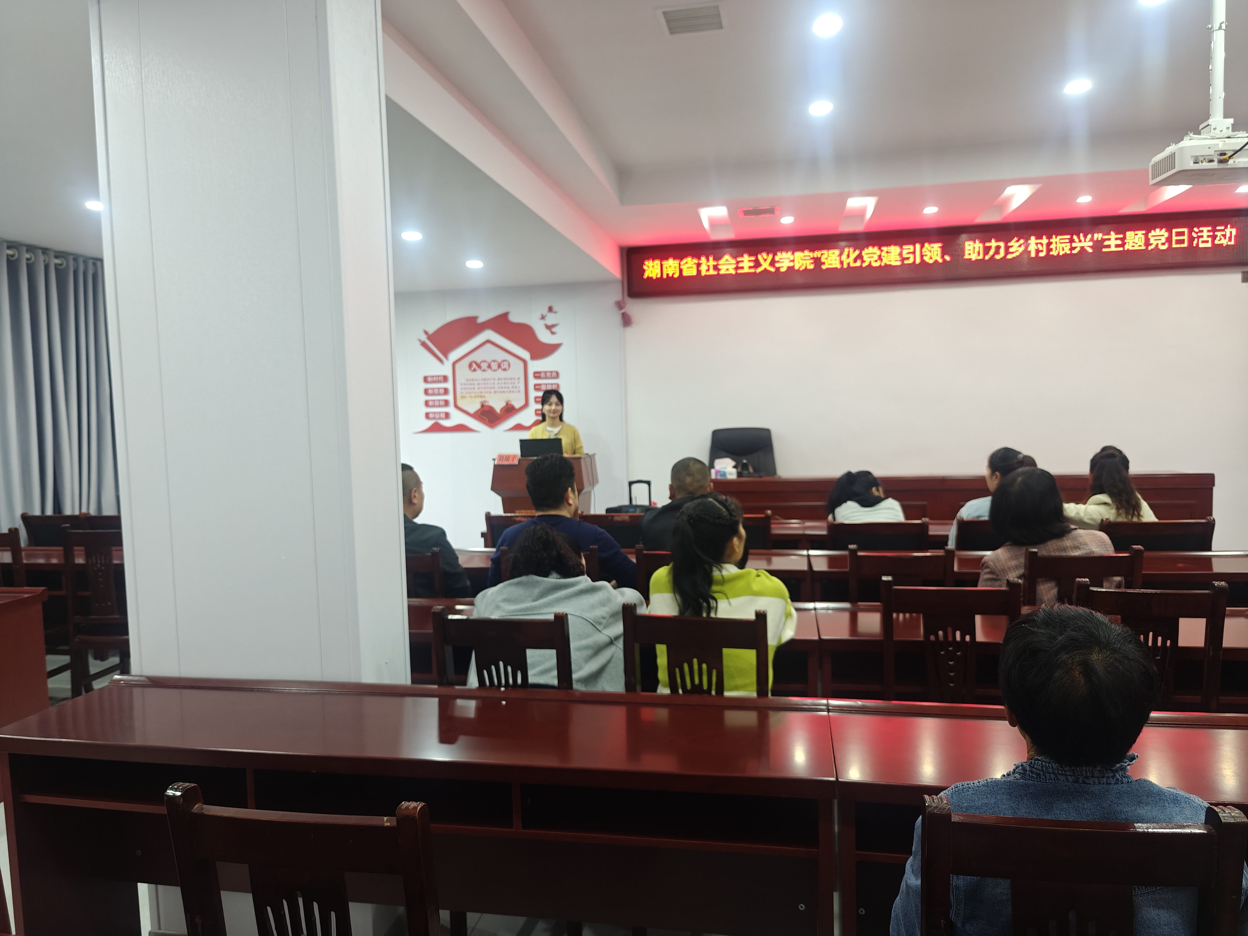 10月16日下午,学院向洪潮村农家书屋捐赠图书,涵盖了少儿教育类、农技类、历史文学类等书籍,既满足了不同年龄段读者的阅读需求,又极大地丰富了图书馆的藏书种类,增添了书香氛围。随后,教研部副教授刘靖子以“心忧天下敢担当——湖湘文化中的爱国主义精神”为题,为洪潮村党员群众进行专题宣讲,激发党员群众爱国情怀,更加积极投身乡村振兴。