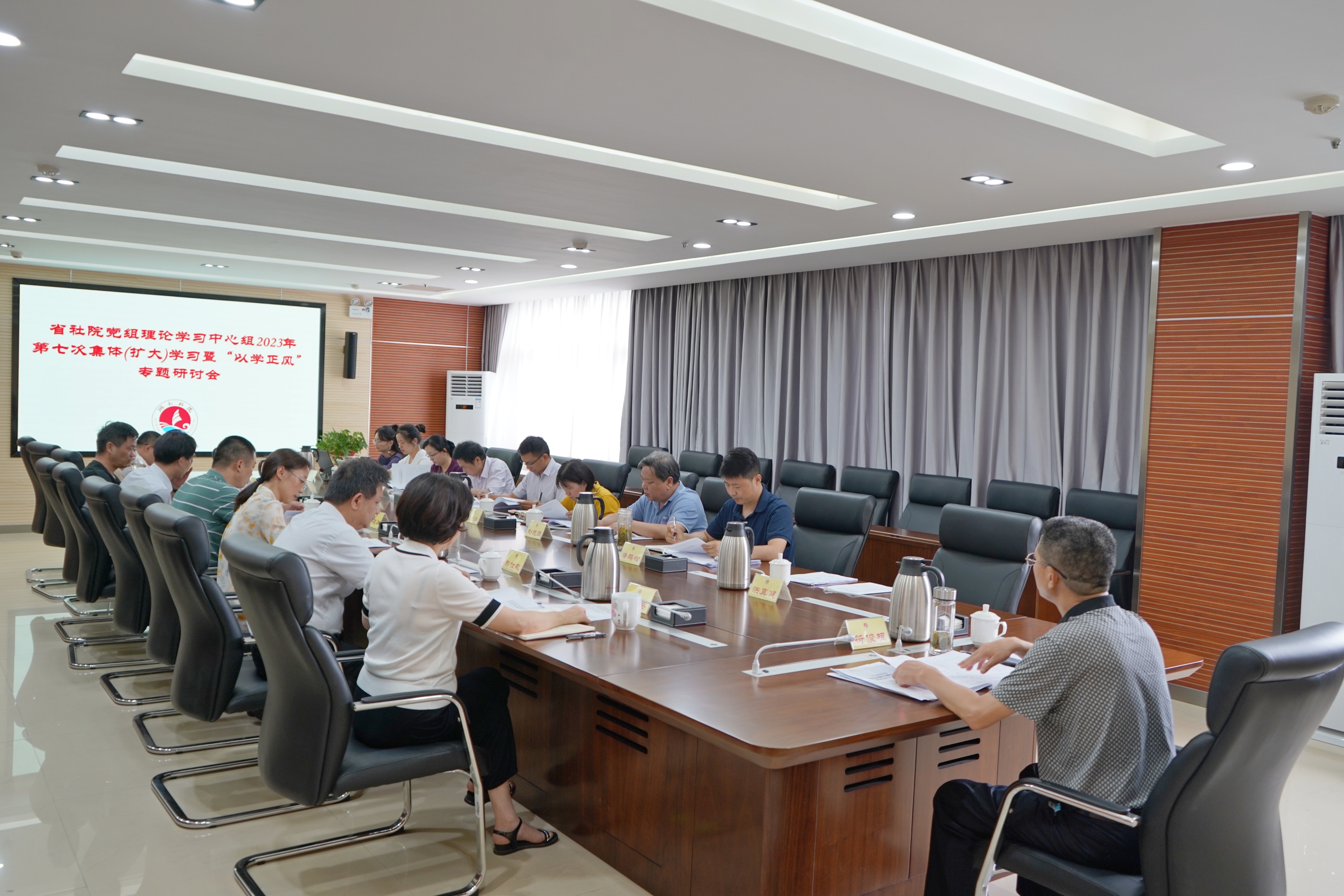 6月29日下午,省社会主义学院举行党组理论学习中心组2023年第七次集体(扩大)学习暨主题教育“以学正风”专题研讨。省委统战部副部长、院党组书记符俊根主持会议并带头发言,中心组成员、有关处室负责同志围绕学习主题,结合各自思想和工作实际,交流学习体会。